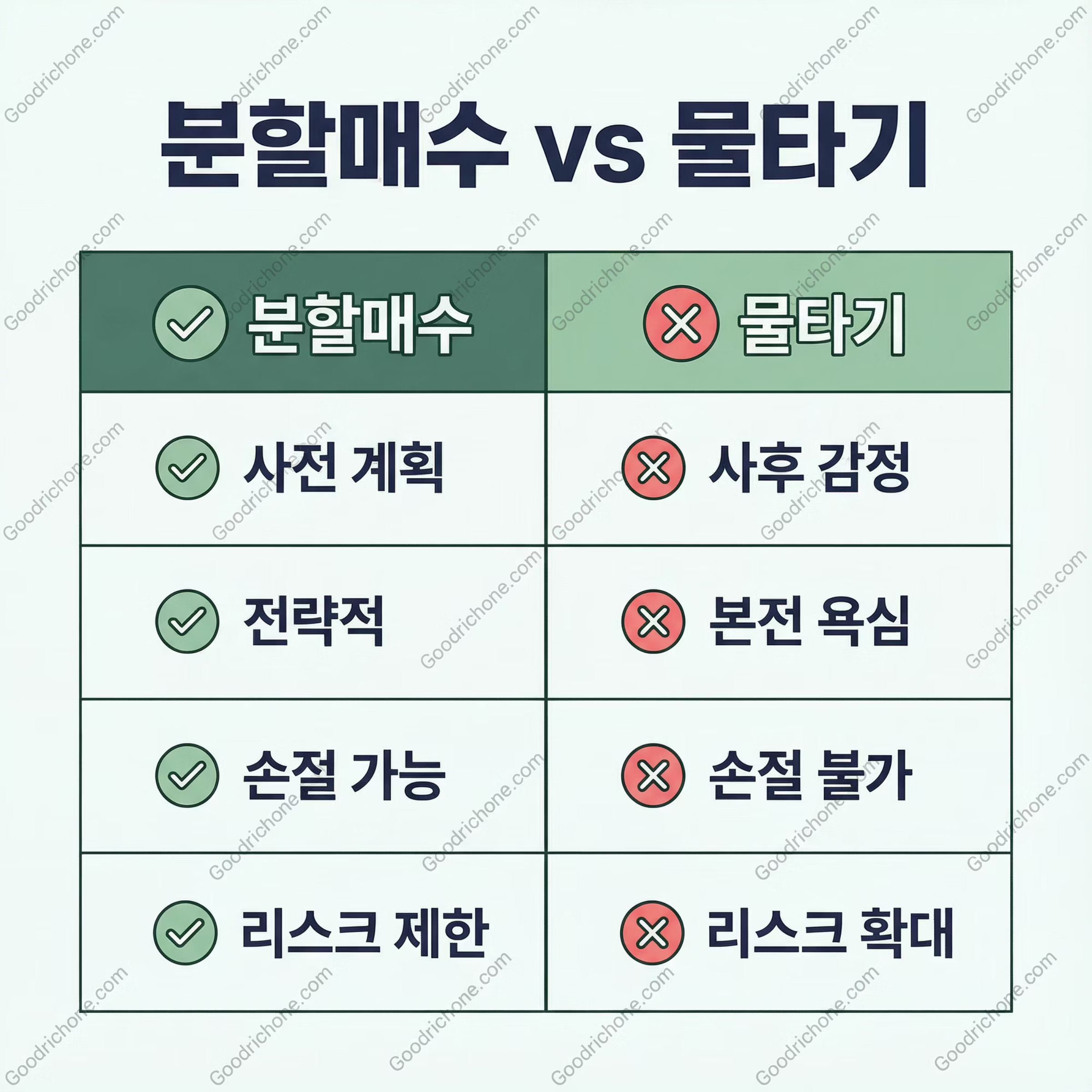 | 구분 | 분할매수 | 물타기 |
