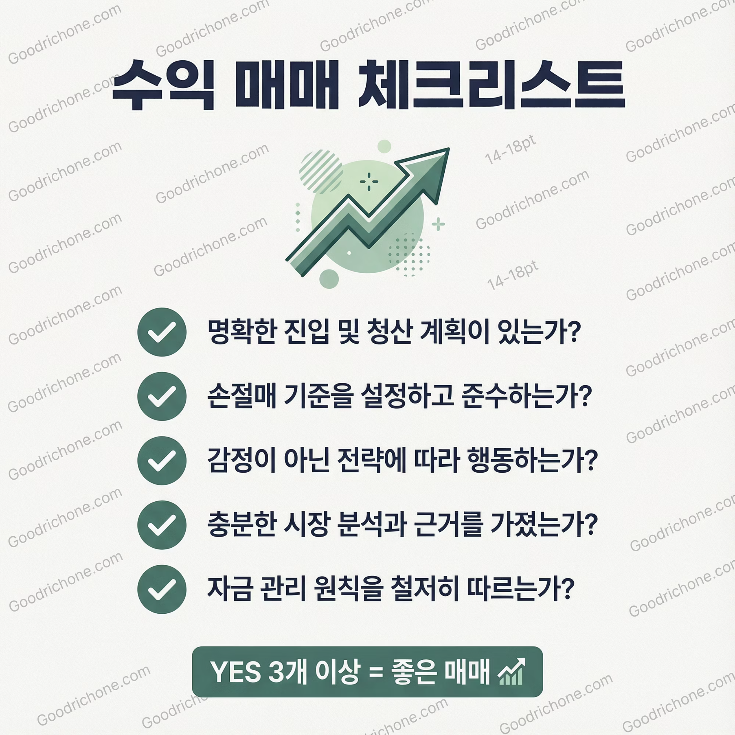 👉 YES가 3개 이상이면 ‘좋은 매매’입니다.