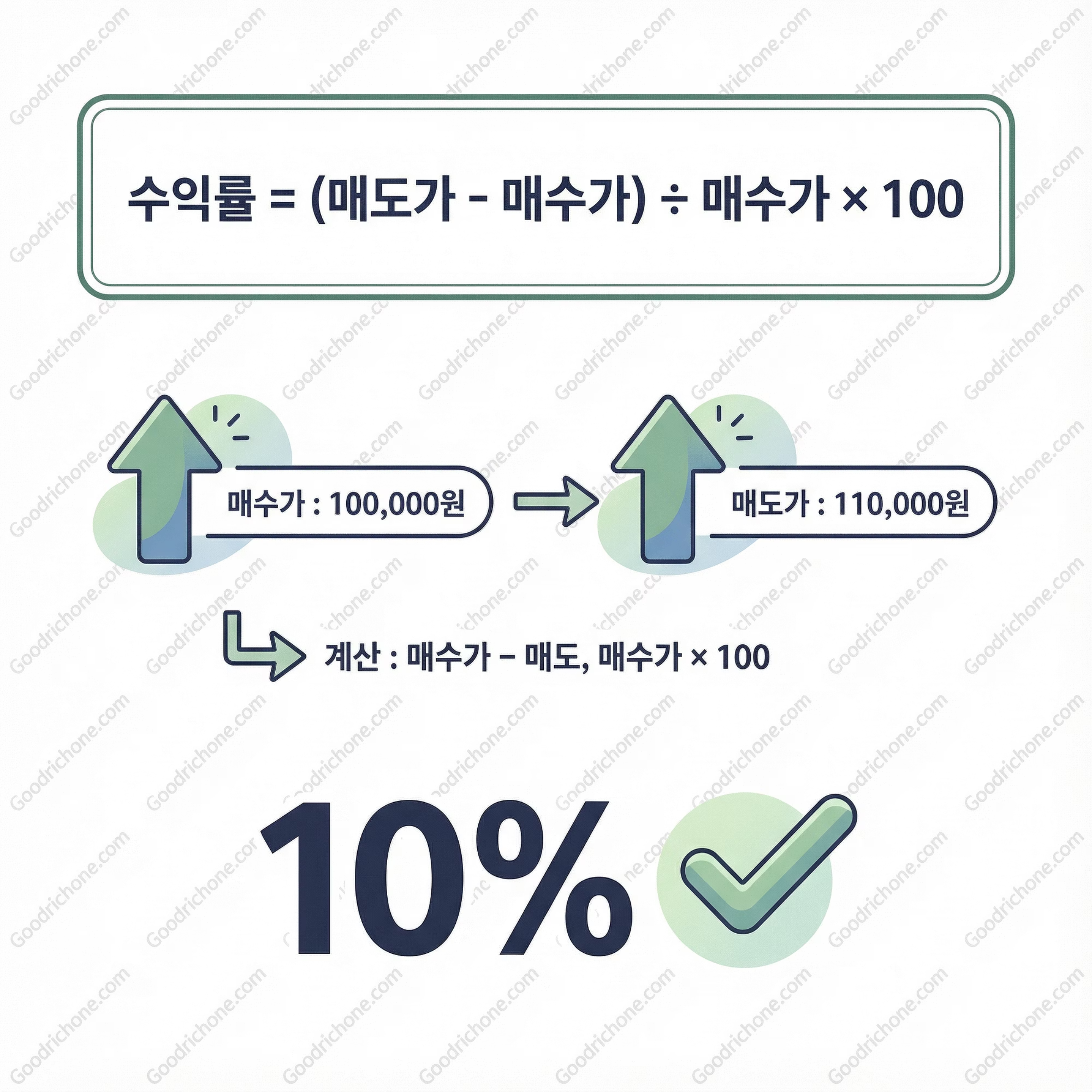 👉 수익률 = (110,000 - 100,000) ÷ 100,000 × 100 = 10%