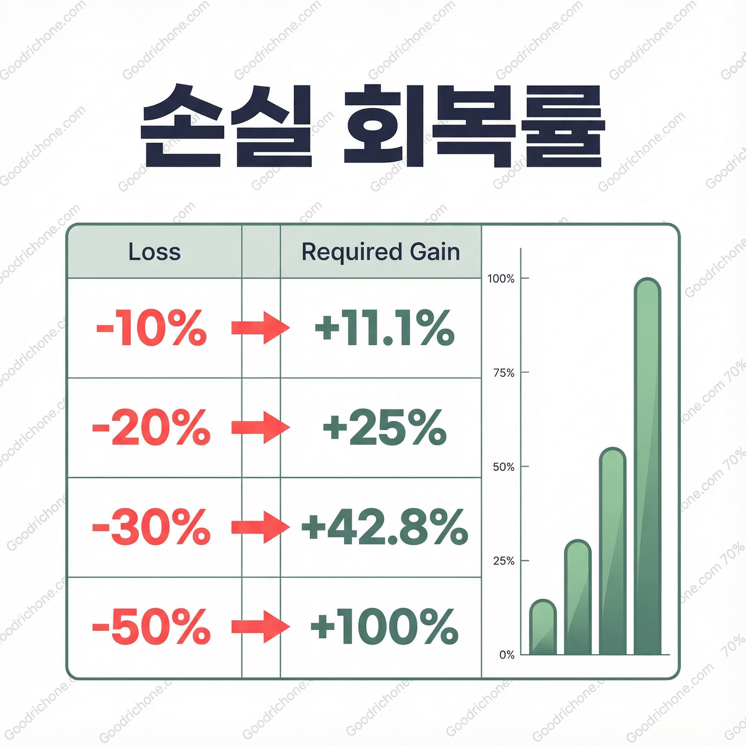 - 손실은 수익보다 회복이 훨씬 어렵다