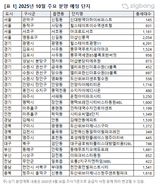 2025년 10월, 추석 연휴 이후 전국적으로 아파트 분양이 본격화됩니다.