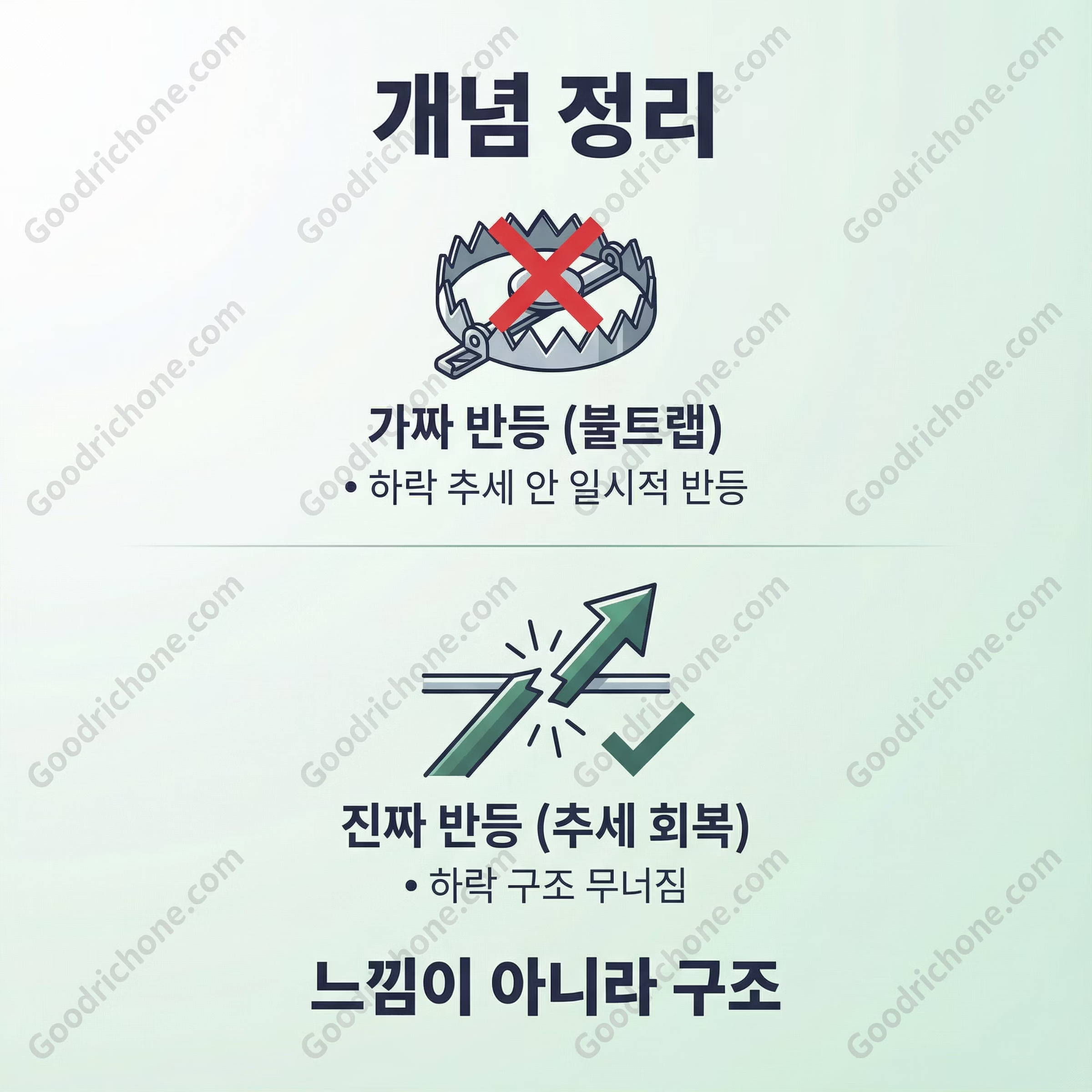 ✔ ‘진짜 반등(추세 회복)’과 ‘가짜 반등(불트랩)’을 구분하는 기준을